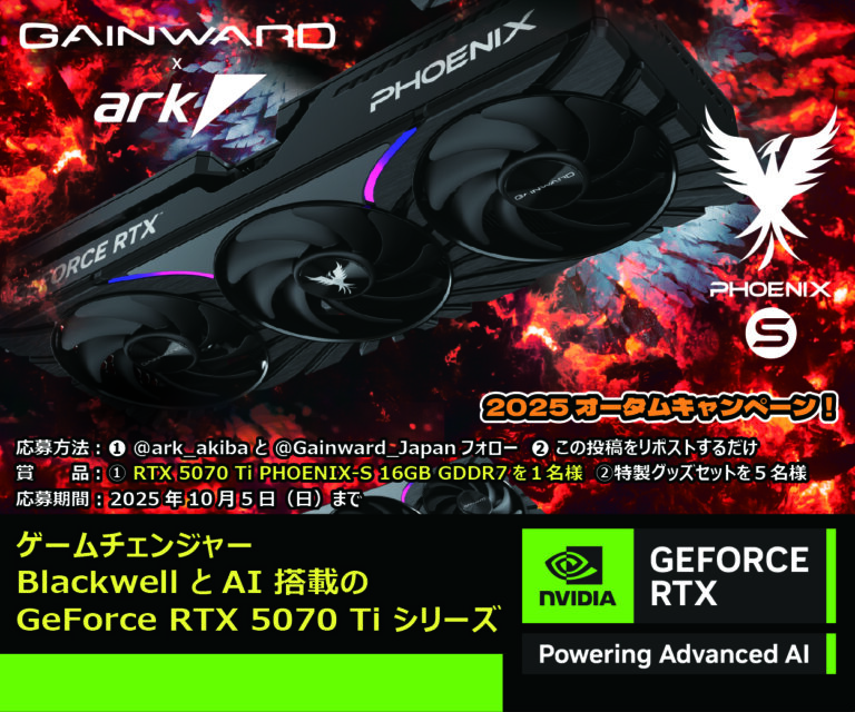 『GAINWARD x パソコンSHOPアーク フォロー&リポスト 2025オータムキャンペーン!』実施